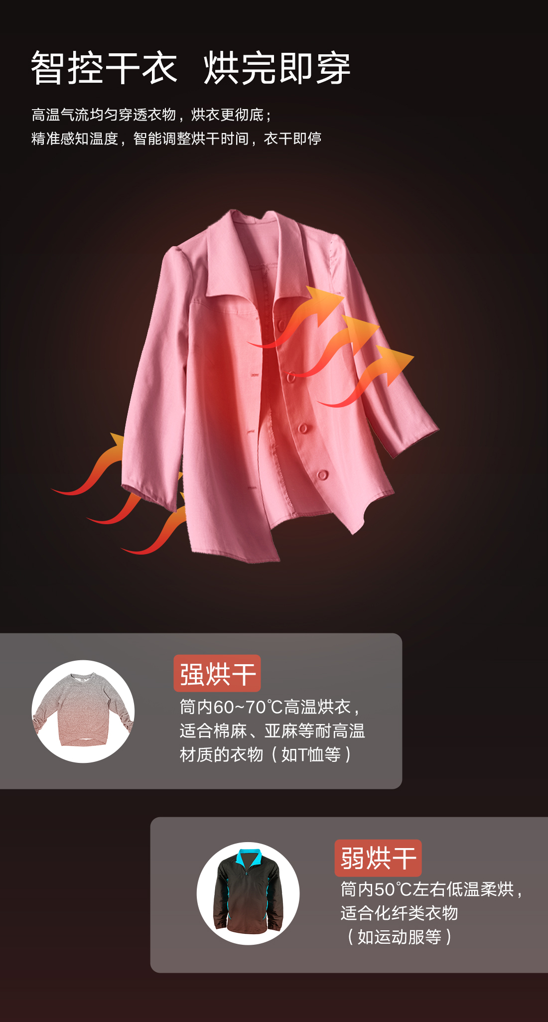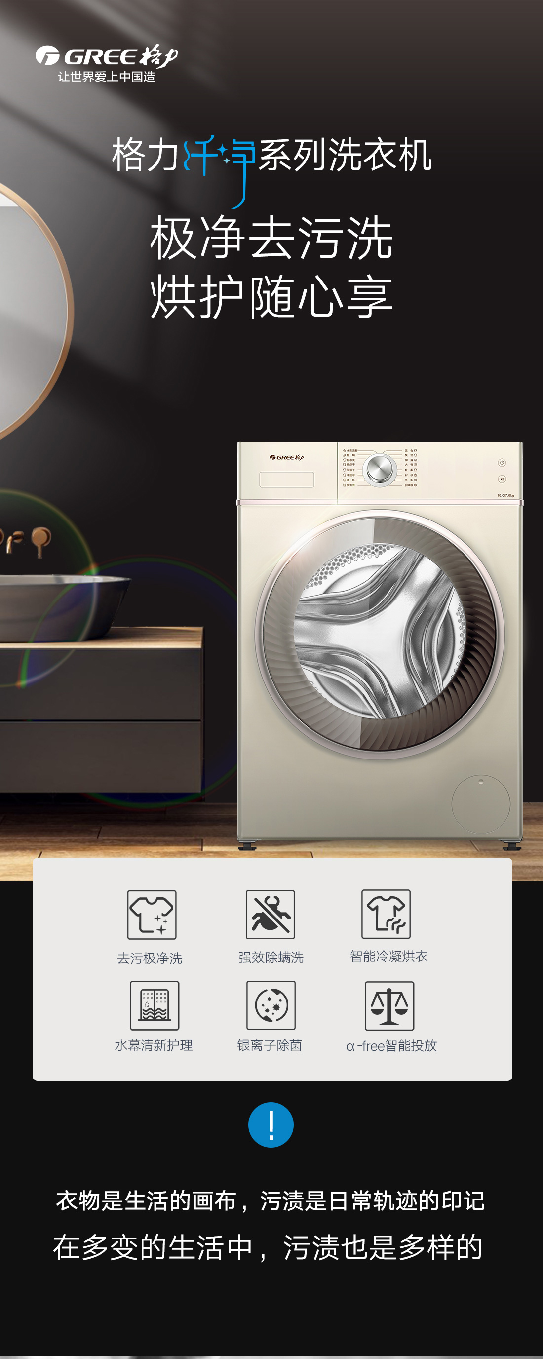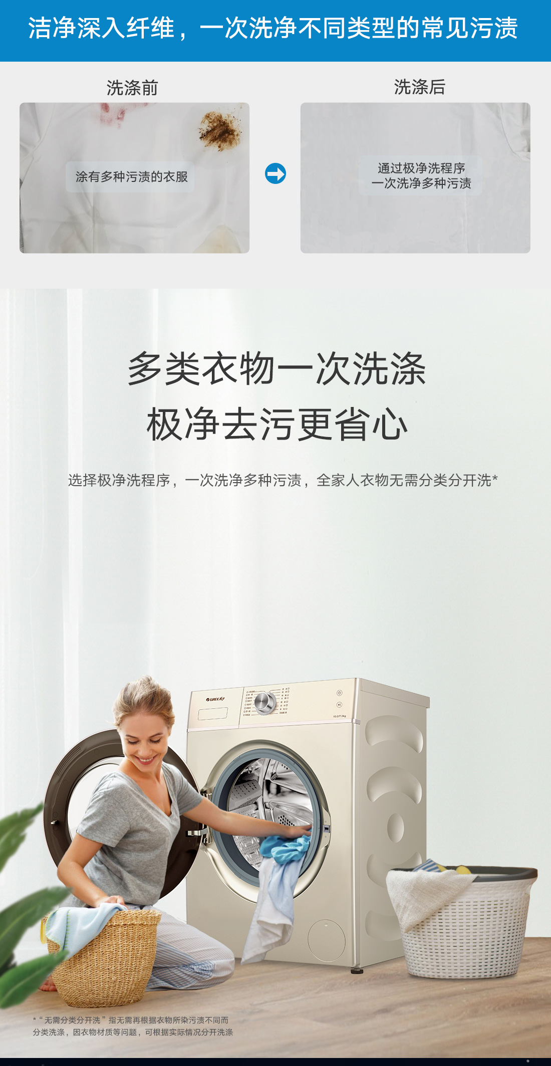 極凈去污,一次洗凈多類污漬,洗烘一體,即洗即烘即穿.