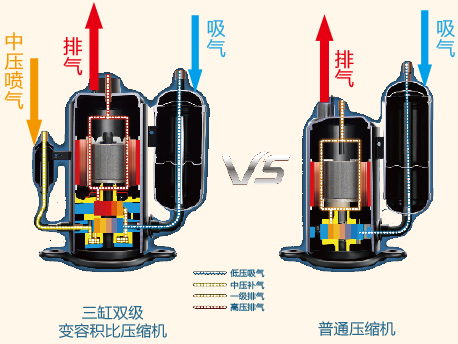 三缸雙級變?nèi)輭嚎s機技術(shù);低溫制熱強勁 高溫制冷舒適;22分貝盡享新“靜”界;高能效 節(jié)能省電;耐寒元器件,-40℃及以下斷電放置能正常啟動;省心安裝